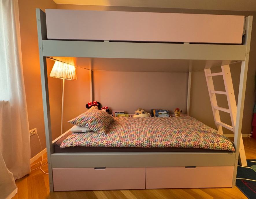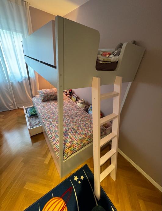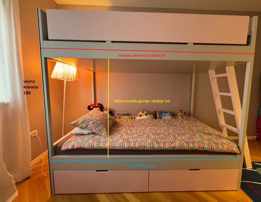 Krevet je toliko udoban i velik da svaki roditelj s veseljem ide uspavati djecu, visina između doljnjeg i gornjeg kreveta je 1m. Tako da se lako sjedi na doljnjem krevetu uspravno!