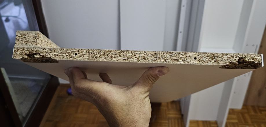 Estetski ne smeta jer je sa zadnje strane,a ne smeta ni funkcionalno jer su izbusene nove rupe za vijke.
