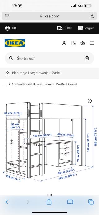 - ispod kreveta je radni prostor gdje se može staviti radni stol ili drugi krevet