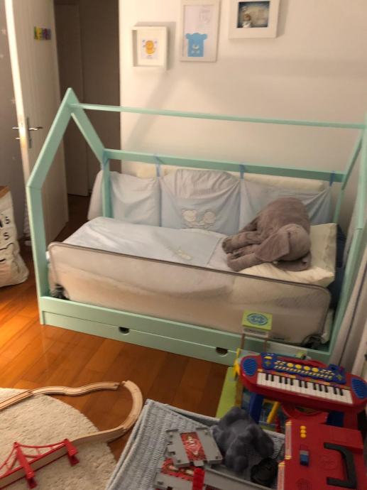 Krevet kućica s dodatnom ladicom/krevetom s podnicama. Komotno za 2 osobe.