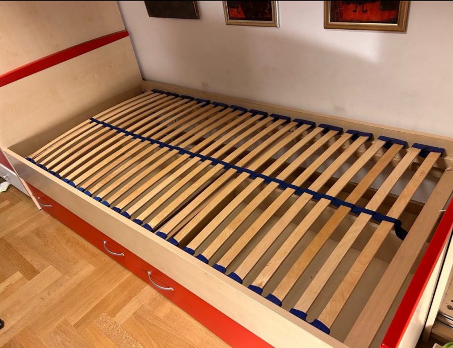 Krevet je dimenzija 90x200 s dvije ladice na razvlacenje te s podnicom.