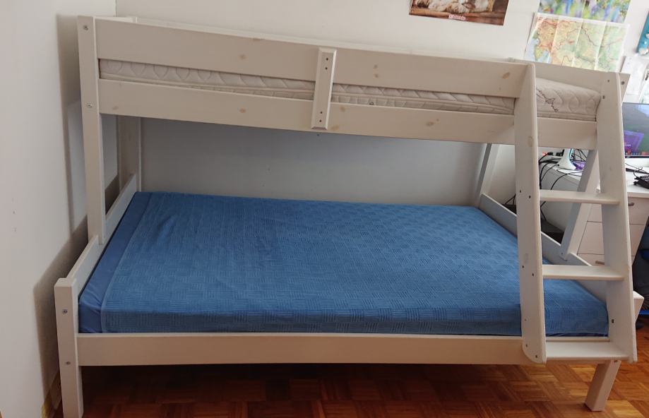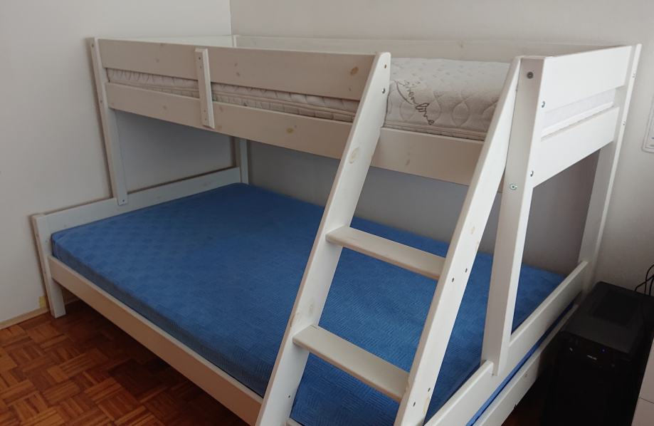 Donji krevet je 120 cm širine, a gornji 80 cm.