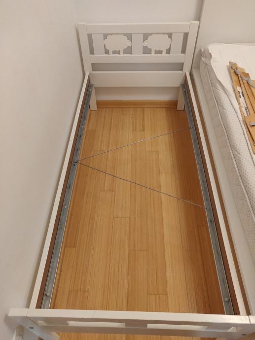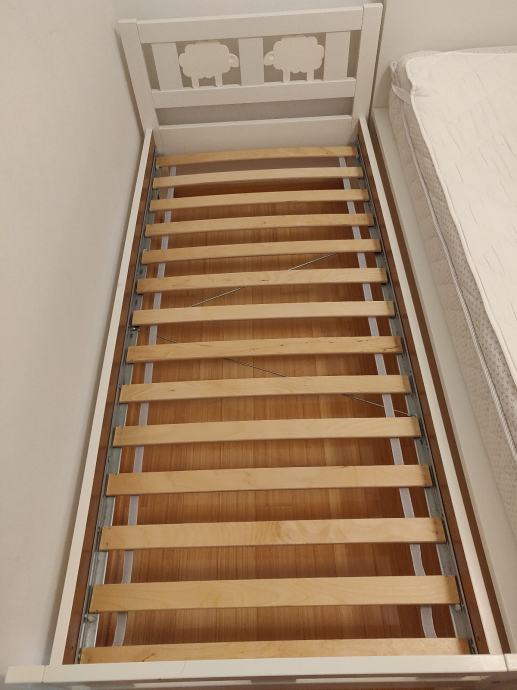 Ikea krevet sa podnicom, madracem sa perivom presvlakom i preko toga zaštitom za madrac. Sve iz Ikee. U kompletu dolazi i ikeina drvena ogradica za krevet. Trenutno je sastavljeno, može se razmontirati, ne šaljem, primopredaja Zagreb.