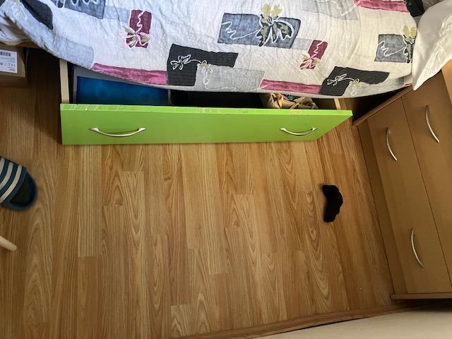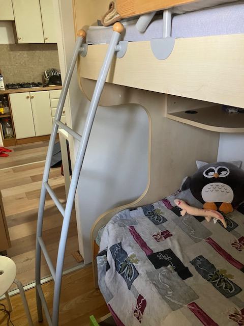 Krevet na kat s madracima i ladicom za stvari.