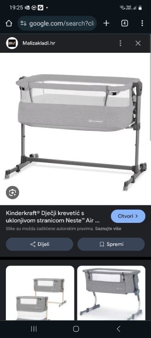 Prekrasan mobilni krevetić-kolijevku prodajemo, neutralna sivkasta boja, iznutra bijeli uzorak sa zvjezdicama. Lako ga se pomiče u prostoru i može se otvoriti stranica te ga primaknuti roditeljskom krevetu. Može se podesiti na 5 supnjeva visine.