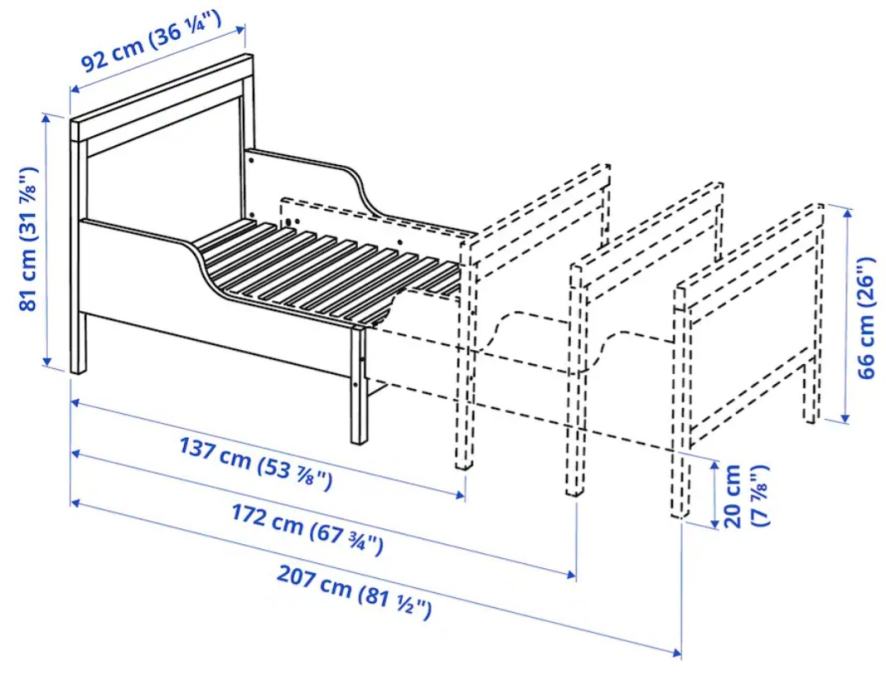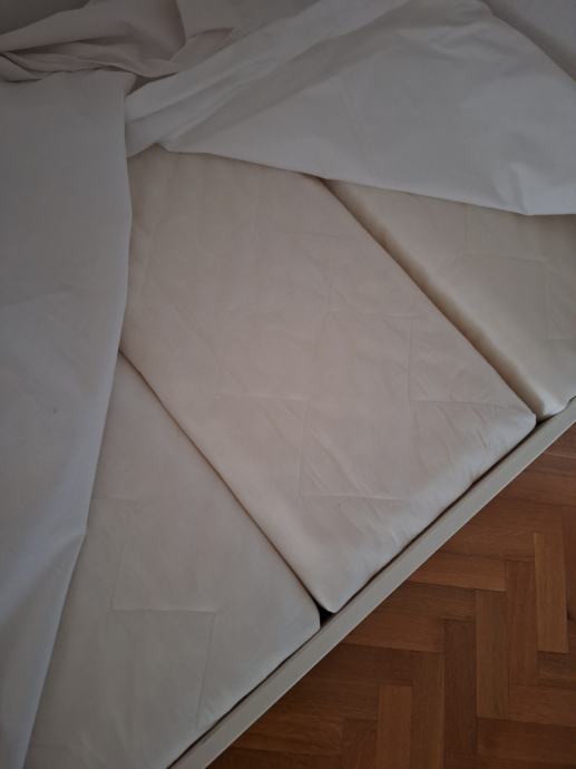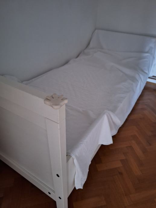 Krevet na produljivanje u odličnom stanju, s pripadajućim produljivim madracom u 3 dijela. Navlaka madraca se skida i može se prati. Vrijednost novog kompleta: 250 eura.