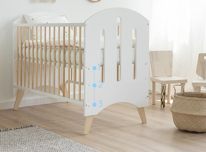 Uklonjive 3 prečke koje djetetu omogućuju slobodan ulazak i izlazak iz krevetića.