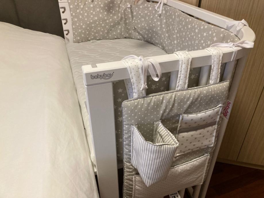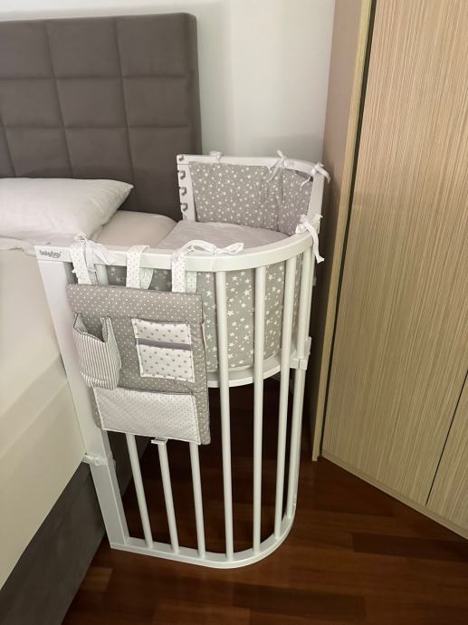 Korišten vrlo kratko, kao nov. Idealan za sigurno i udobno spavanje bebe uz roditeljski krevet. Može se koristiti i kao klupica za sjedenje.