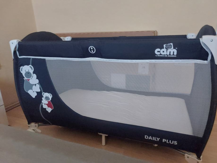 Putni krevetic ,talijanske marke CAM je dobro ocuvan, sadrzi svu opremu ,podesavanje visine ,odnosno dubine u krevetcu, ovisno o starosti bebe, dasku za presvlačenje, nadglavnjak i mrežicu za zaštitu od insekata kao i madrac i posteljinicu .