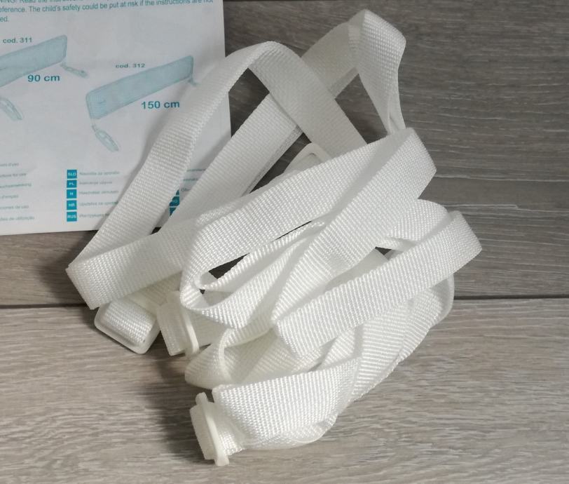 Prodajem BREVI zaštitnu ogradicu za krevet duljine 90 cm jako malo korištenu. Ogradica je oprana i čista, bez ikakvog oštećenja, u besprijekornom stanju, kao nova. Mi zaštitne trake nismo uopće koristili, jer nam je i bez njih ogradica bila jako stabilna. Prikladna je za sve vrste kreveta, lako se montira jednim pokretom i nije ju potrebno skidati prilikom pospremanja kreveta jer se uz pomoć bočnog mehanizma može okrenuti za 180°.