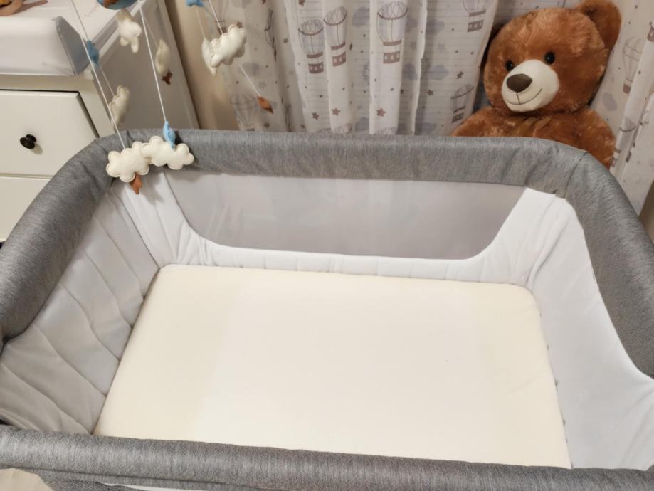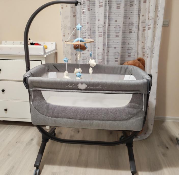 Cam kolijevka Cullami - 2u1 bočna i samostojeća kolijevka za bebe od rođenja do cca 9 mj. (0-9 kg). Ima 8 položaja visine, mogućnost otvaranja bočne stranice za spavanje uz bebu, vertikalni nagib (anti-refluks), funkciju njihanja, horizontalno pomicanje do 16 cm, 4 okretna kotača s kočnicama te trake za sigurno pričvršćivanje za krevet. Vrtuljak gratis