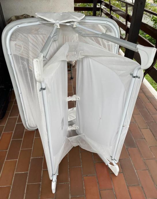 Prodajemo rijetko rabljen rasklopivi dječji krevetić / vrtić, za koji je preporučena dob od rođenja do 3 godine starosti, odnosno do 15 kg opterećenja koje može podnijeti budući da na samom proizvodu tako piše. Vrlo siguran i ugodan vrtić za bebu i posebno jednostavan za rasklapanje i sklanjanje roditeljima. Versatilan, jer je također jednostavan za održavanje/ čišćenje; Kompletno periv, može se postaviti i van, kao npr. na balkon.