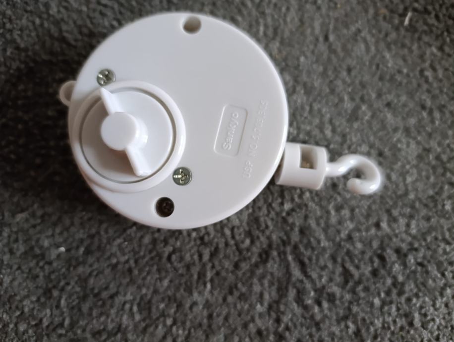 Nikad korištene igračke i vrtuljak, samo povremeno korištena glazbena kutija na navijanje s uspavankom. Bila je u dječjim rukama pa je stradala, zato smo kupili zamjensku sa zvjezdicama (na slici).