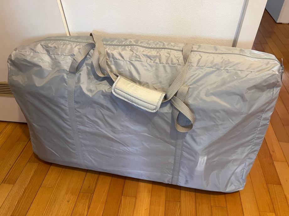 Može se koristiti kao dodatni krevet (postoje remeni za pričvršćivanje na krevet) ili ponijeti sa sobom (postoji navlaka).