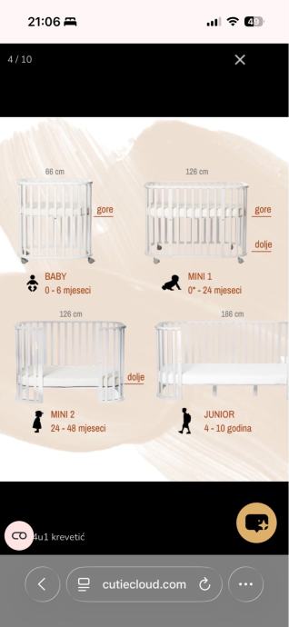 Djecji krevetic koji raste s dijetetom: kolijevka, krevetić za bebe i krevetić za djecu.