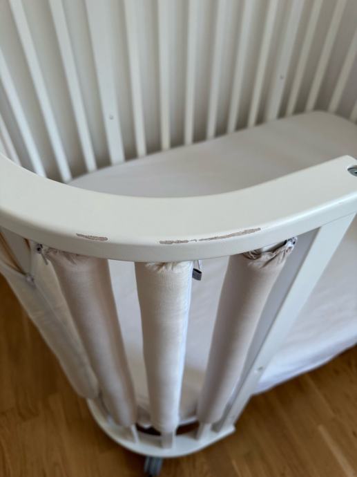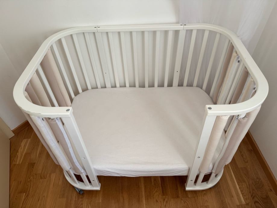 U kompletu dolaze dva madraca i dvije plahte (baby i mini) + nepropusna plahta mini koja je dodatno kupljena. Takoder uz krevetic poklonjam 14 zaštitnih navlaka Dada&Rocco u vrijednosti od 60 eura koje su prikazane na slici. Krevetic je ogreban s jedne strane što je prikazano na slici.