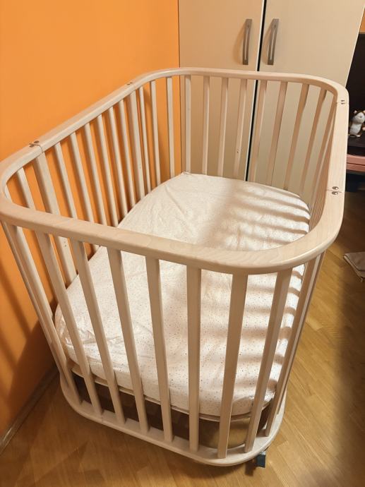 Cutie cloud krevetić u od drveta bukve. Malo korišten, u odličnom stanju. Uz njega dolaze i originalni madraci u dvije veličine. Krevetić je praktičan zbog svog ovalnog oblika i kotačića koji omogućavaju premiještanje po sobici.