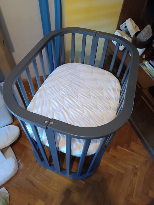Prodaje se sivi Cutie cloud krevetić u odličnom stanju, uz njega dolaze svi potrebni dijelovi za proširenje iz baby u mini 1 i u mini 2 ( 2 x ograde za proširenje, 4 x letvice, madrac baby, madrac mini ,podnica baby, podnica mini i 4 kotačića) Kratko je korišten za jedno dijete te je stanje kao na slikama.