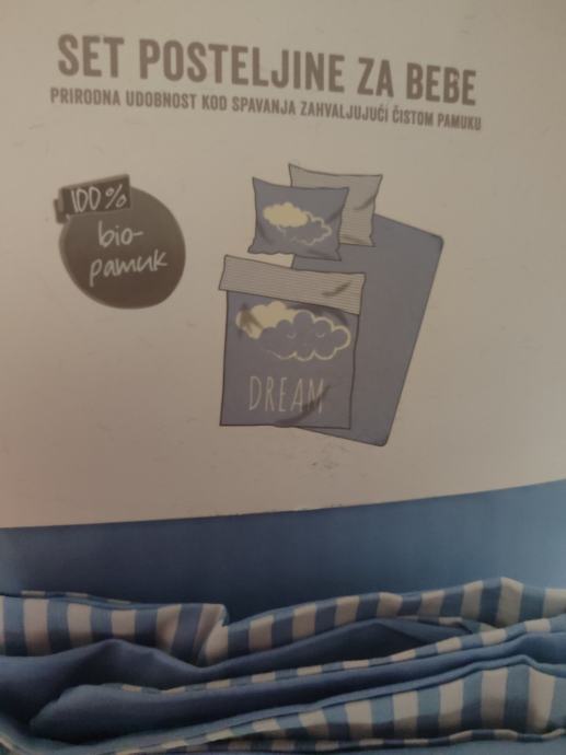 Uz to ide i jedan set posteljine za bebe, koja nikada nije bila korištena.