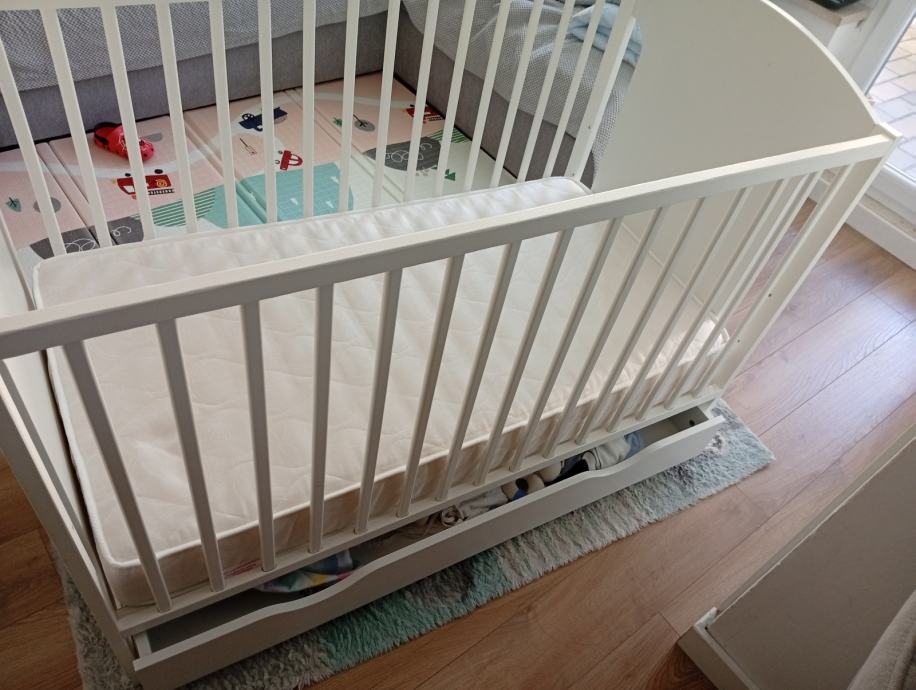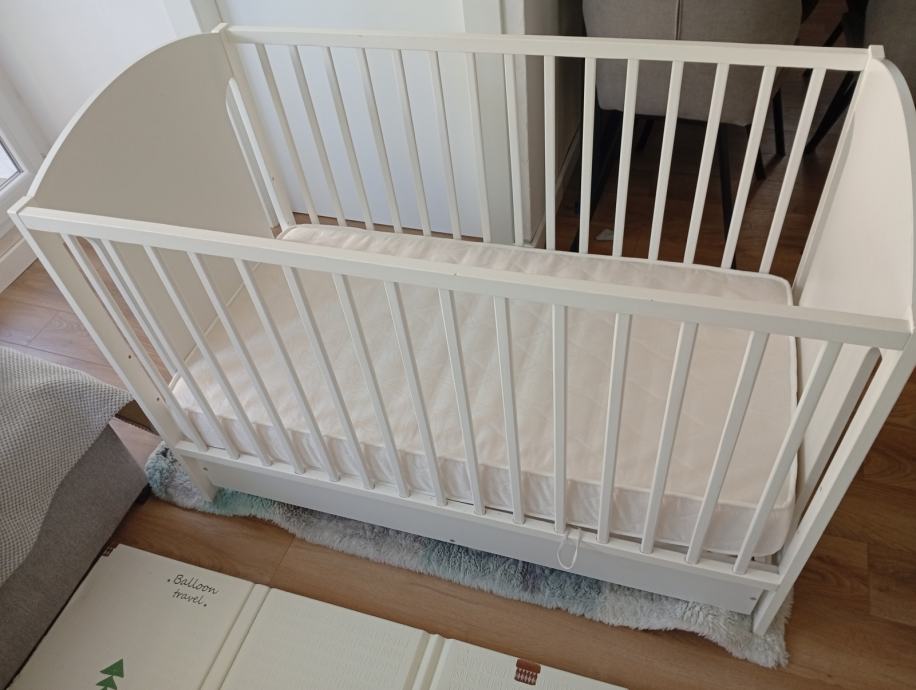 U vrlo dobrom stanju dimenzije 120*60. Uz njega ide i madrac. Krevetić se može podešavati na tri razine. Ima i ladicu za skladištenje.