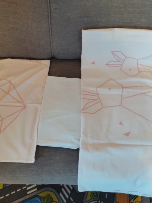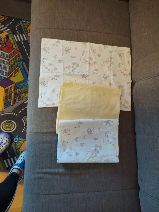 Prodajem nekoliko kompleta dječje posteljine za krevetiće za bebe klasičnih dimenzija u kojemu dijete može spavati do neke 4.god.ili za korištenje za vrtić.