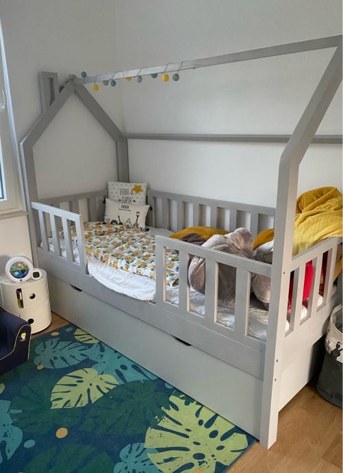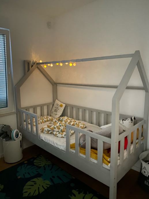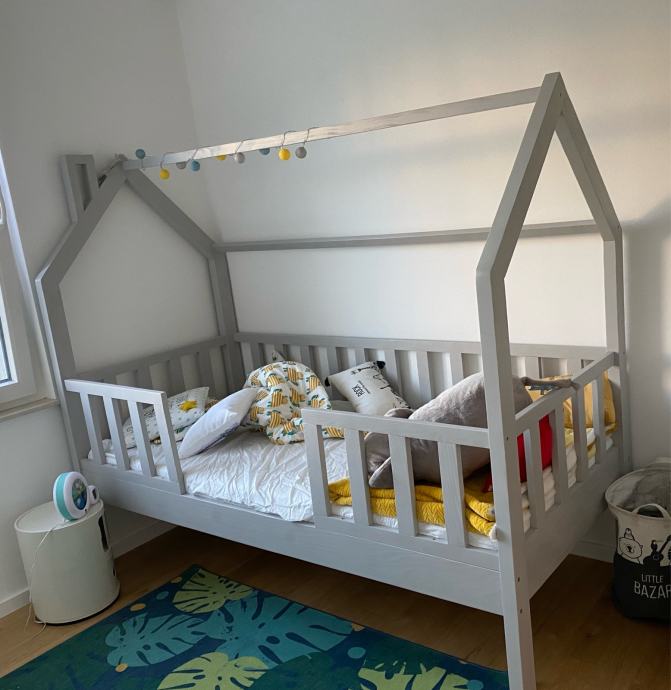 Prodajem drveni krevet kućica hrvatskog proizvodjača San.hr. Dimenzije 90 x 200cm. Krevet je bio radjen po narudžbi (cekali smo ga jako jako dugo) i je minimalno korišten. Prodajemo jer nam prostor ne dopušta dva kreveta u sobi.