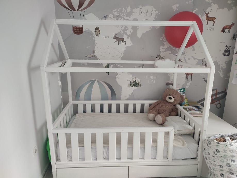 Dječji krevet-kućica (160x90), podnica,madrac,dvije ladice - ručni rad