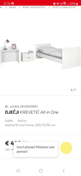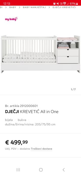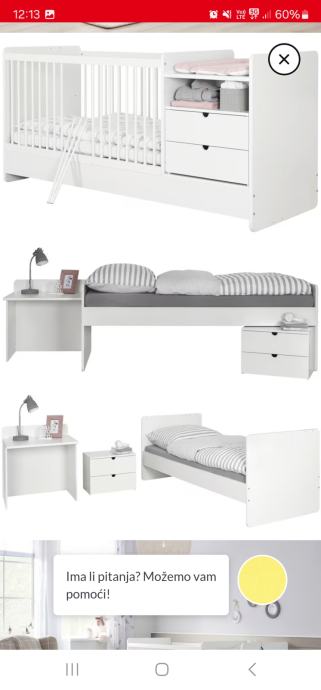 Prodajem nekoristeni djecji krevetic 3 u 1 iz lesnine kupljen u 11 mj 2022. Ima prematalicu i krevetic nakon koje se moze pretvoriti u krevet sa stolicem i ormaricem. Madrac je takodjer tada kupljen u lesnini. Prodajem jer mi je visak