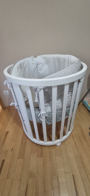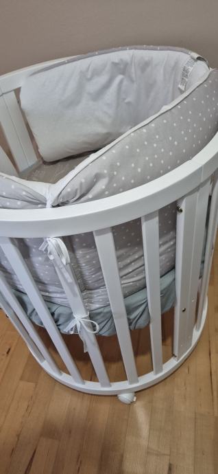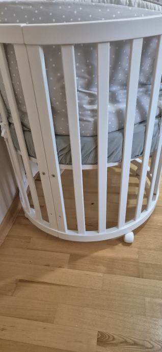Prodajem djecji krevetic sastavljena kolijevka i rastavljena sa slike 1. za novorodence 0-6 mj , nije nikad koristen ! Stoji u ormaru uredno slozen . Dolazi sa madracem 70x10, 120x70 170x70 koji je takoder u ormaru i ispod kreveta u najlonu . Krevetic je namjenjen do 7 god. uzrasta , kvalitetne je izrade od punog drva sto mu daje tezinu, stabilnost i sigurnost . Kotacici se zakljucavaju ako je krevetic na jednom mjestu
