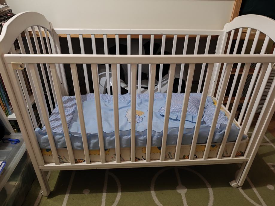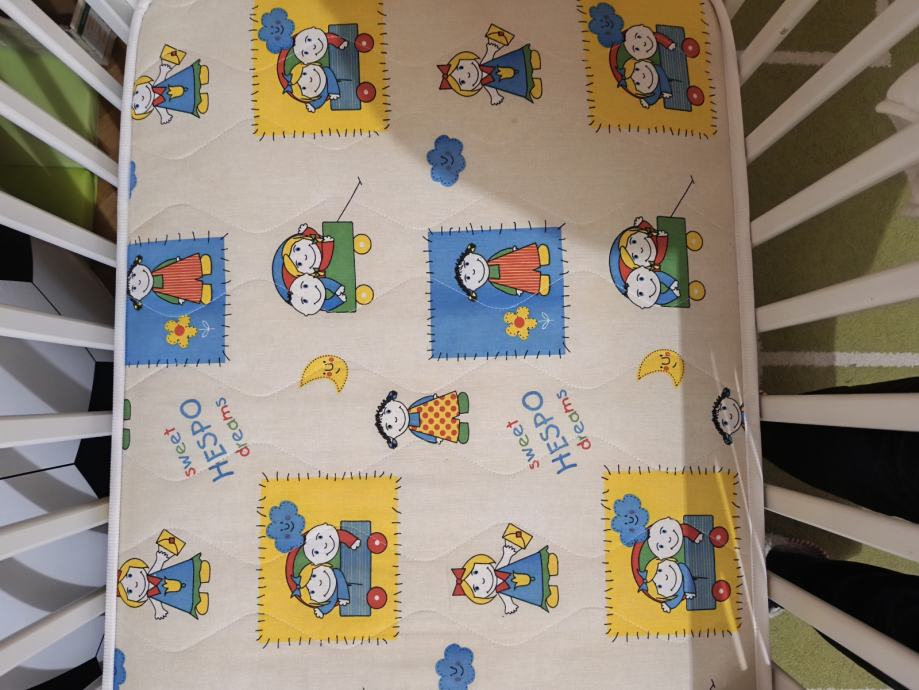 Prodajemo bijeli dječji krevetić i Hespo madrac. Krevet se vrlo lako rastavlja. Podizanje podnice na nekoliko visina. Jedna strana ogradice se spušta.