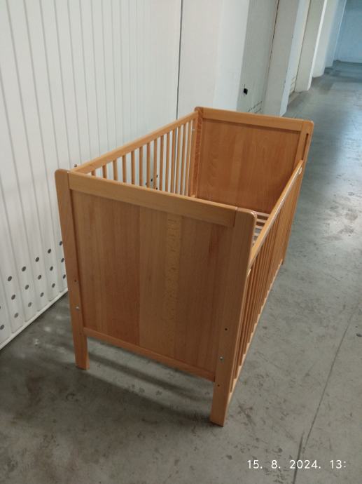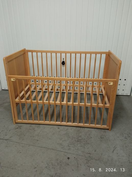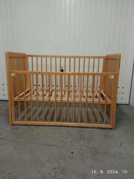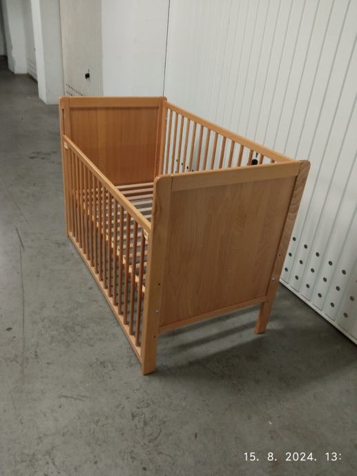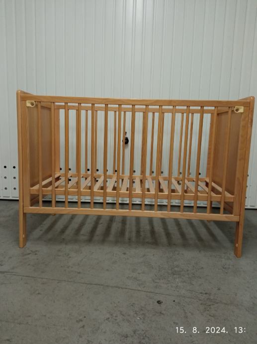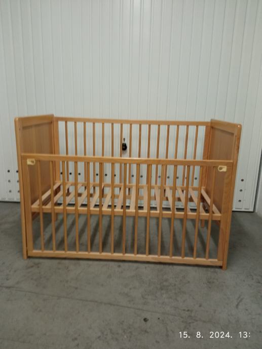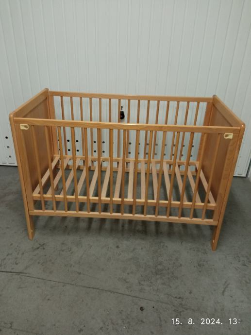 Prodajem dječji krevetić(kinderbet) 120x60 cm bez madraca.Prednja stranica se spušta ,tako da je lakše uzeti dijete. Podnica se podešava u tri (3) položaja po visini.Boja je kao na slikama svijetla bukva.