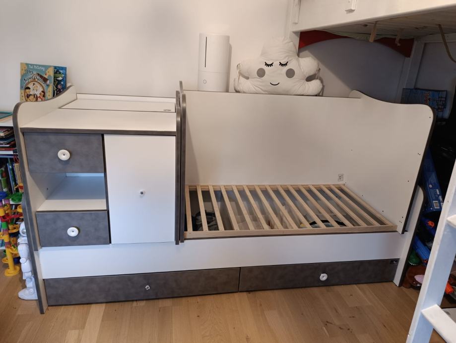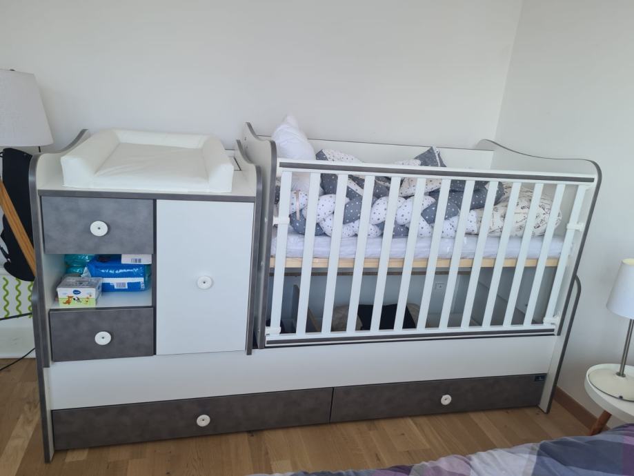 Dimenzije: 120x60 cm (za bebe), kasnije pretvaranje u 165x70 cm krevet