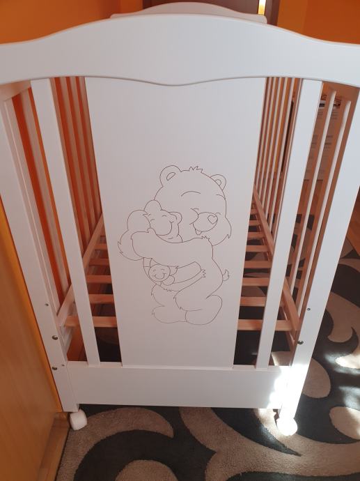 Dječji krevetic Lux odlično očuvan, sa kotačićima, podnica podesiva na 3 razine, jedna bočna stranica također podesiva, madrac također u odličnom stanju dimenzija 120cmx60cm.