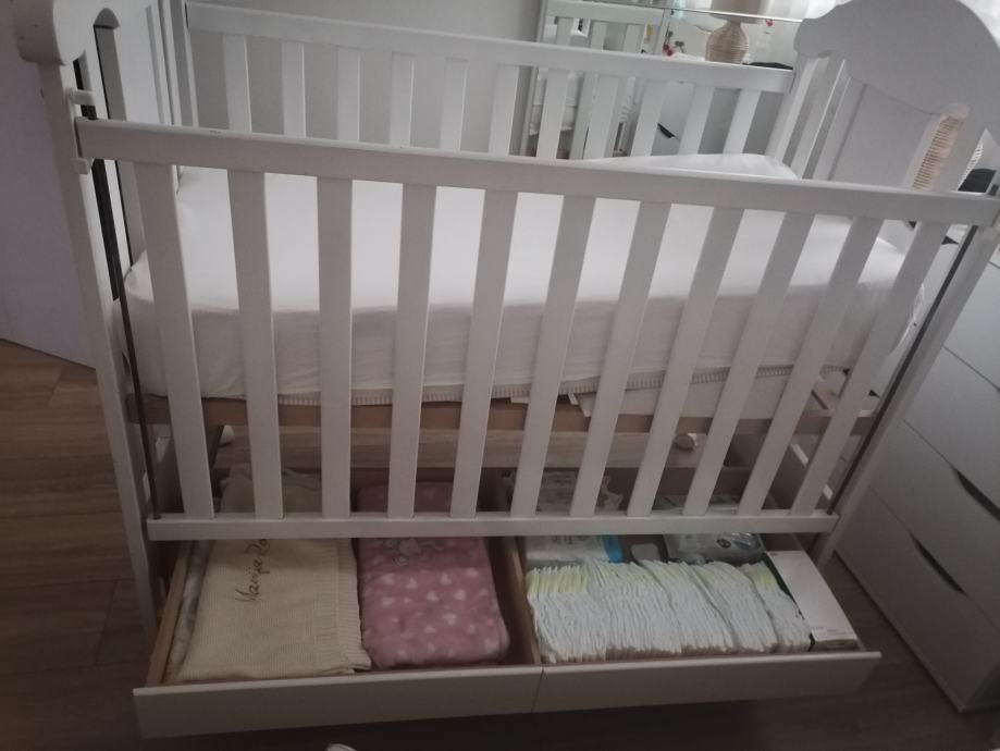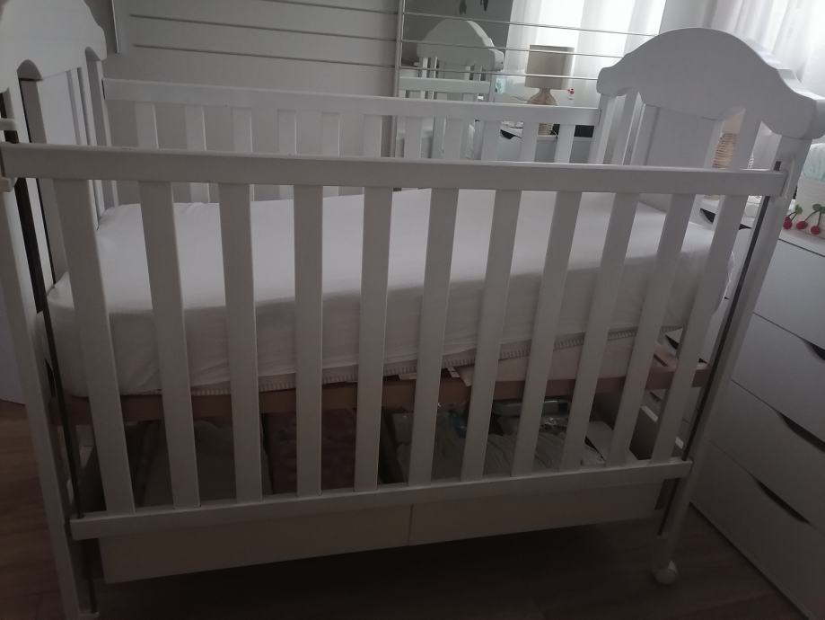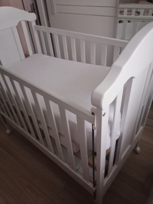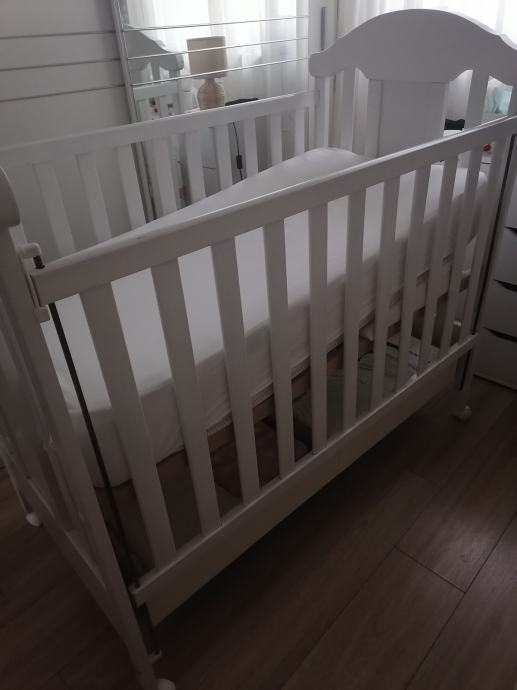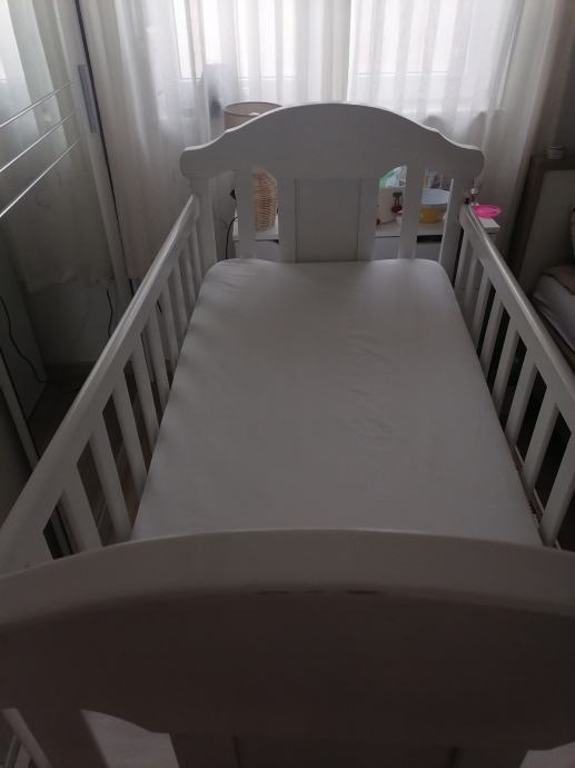 Dimenzije 60x120 cm, madrac može ići na 3 razine, jedna stranica krevetića se može spuštati, sadrži i donju ladicu za pohranu stvari.