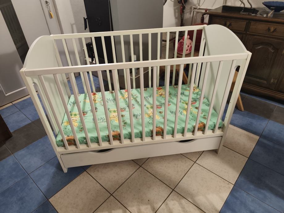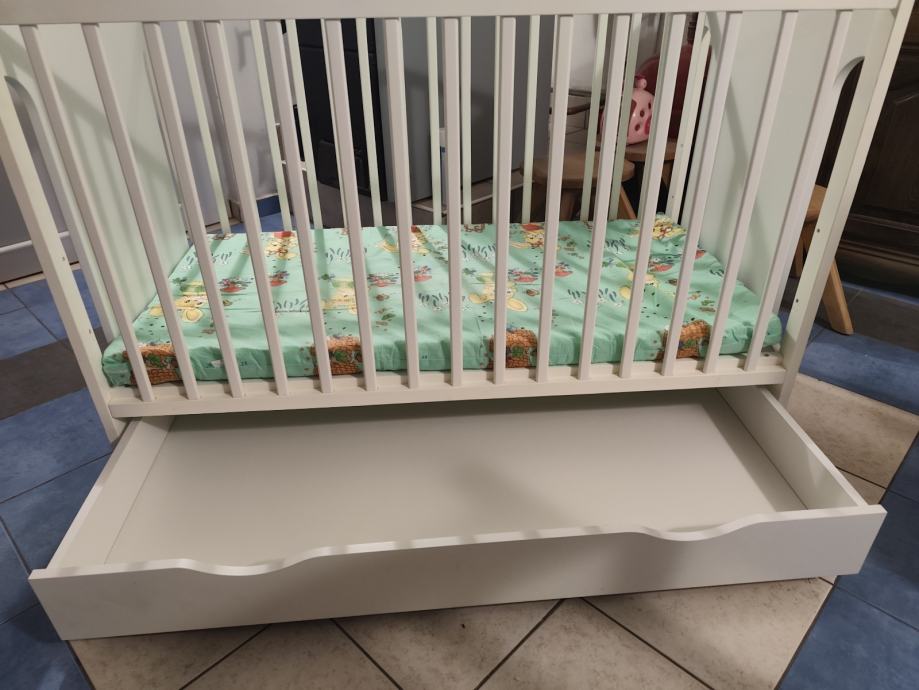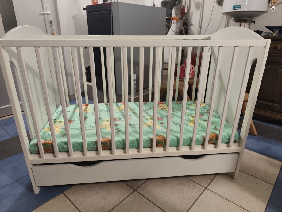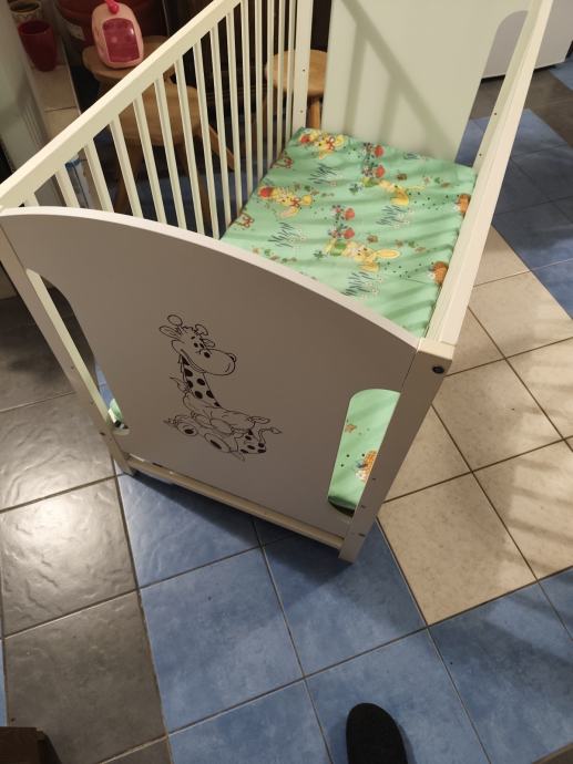 Prodajem dječji krevetić sa podnicom i madracem. Krevetić je podesiv u dvije visine te ima ladicu.