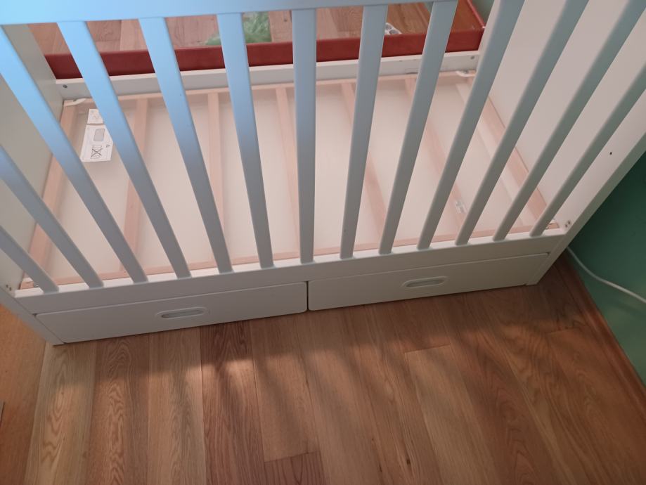 Prodajem dječji krevetić 60x120cm s pripadajućom mu original podnicom. Sadrži dvije ladice praktične za odlaganje dječje posteljine. Jedna stranica krevetića se može u potpunosti ukloniti, pa ga malo starije dijete može koristiti samostalno kao svoj prvi krevetić. Krevetić je korišten za jedno dijete, očuvan u dobrom stanju.