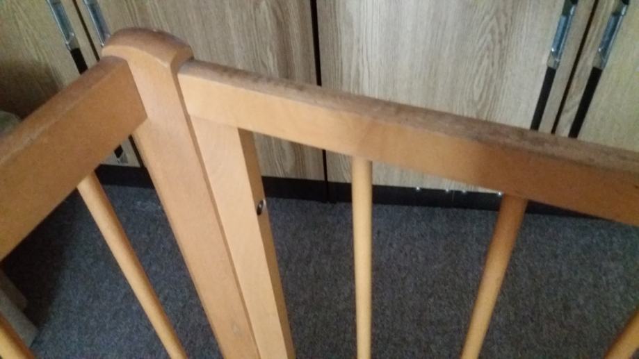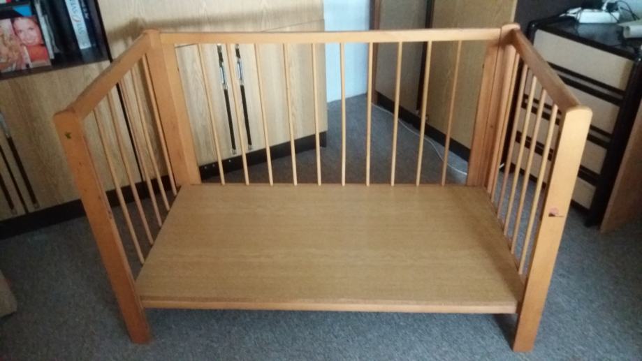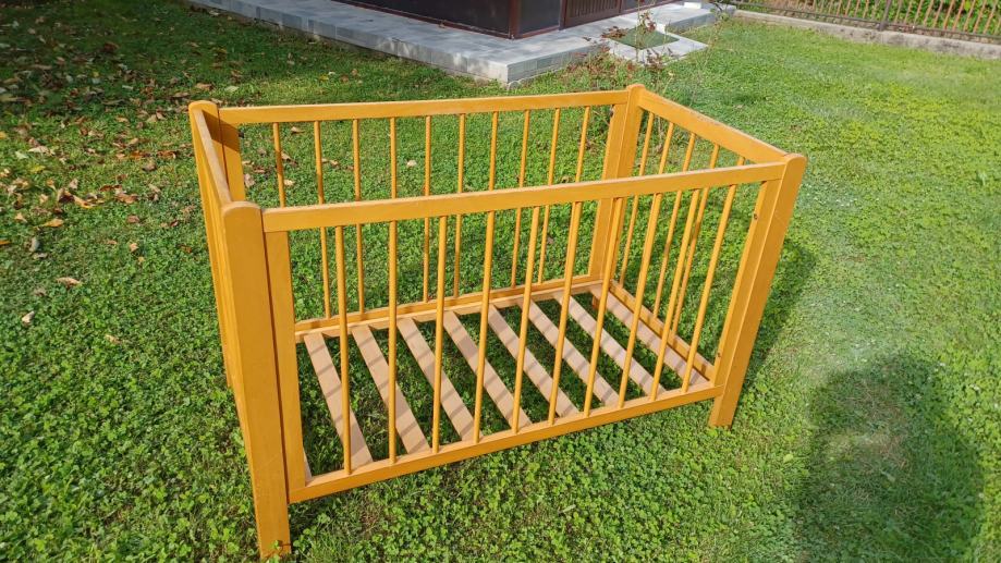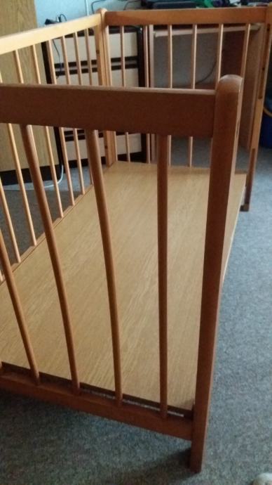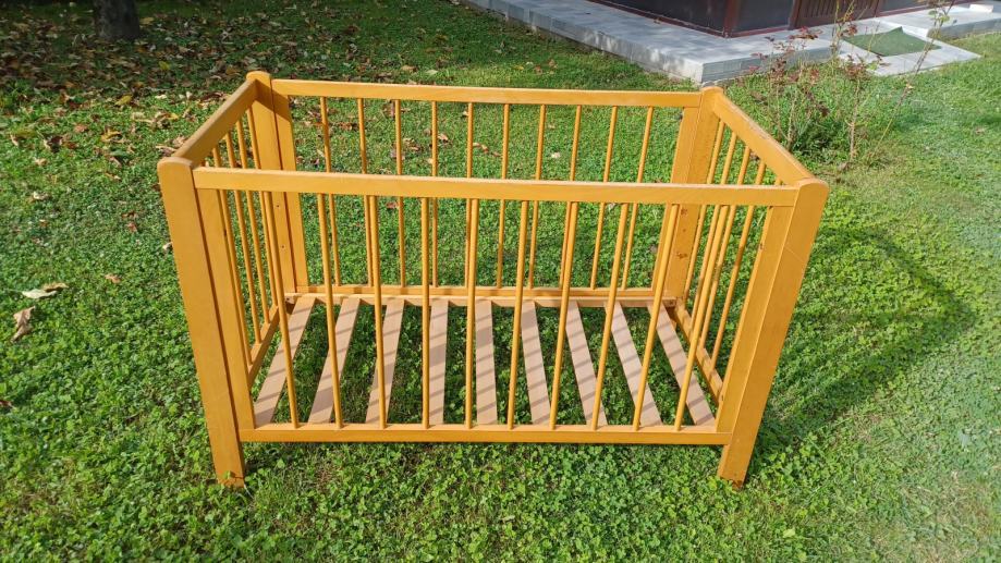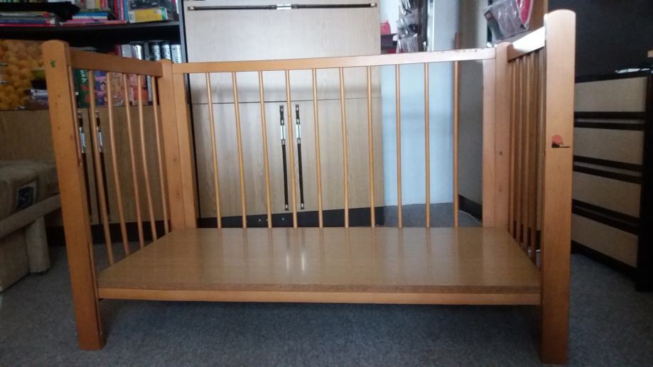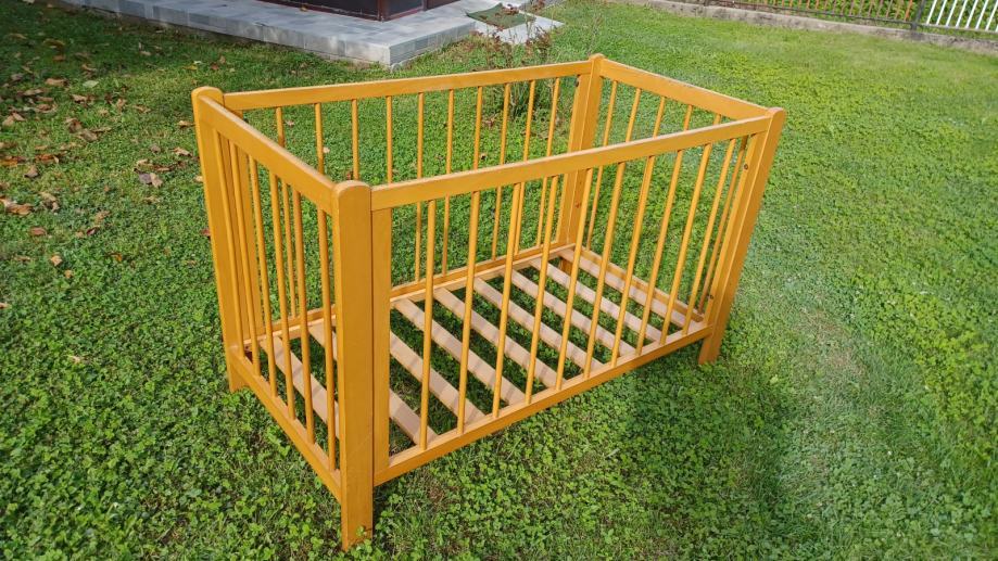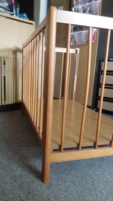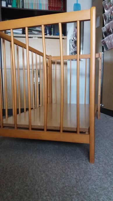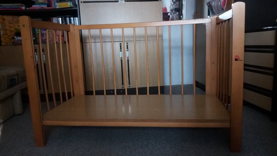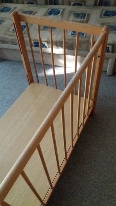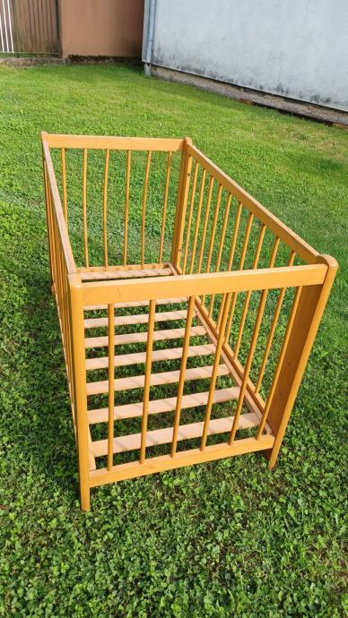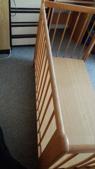 Prodajem drveni dječji krevetić dužine 123 cm, širine 65 cm i visine 80 cm (s tri razine).