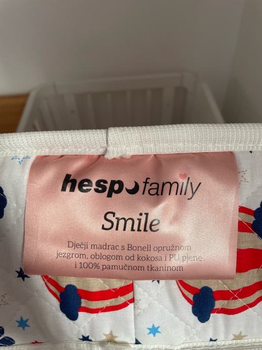Hespo smile djecji madrac s oprugama - kupljen prije 2godine, nije uopce koristen jer je dijete spavalo u bracnom krevetu.
