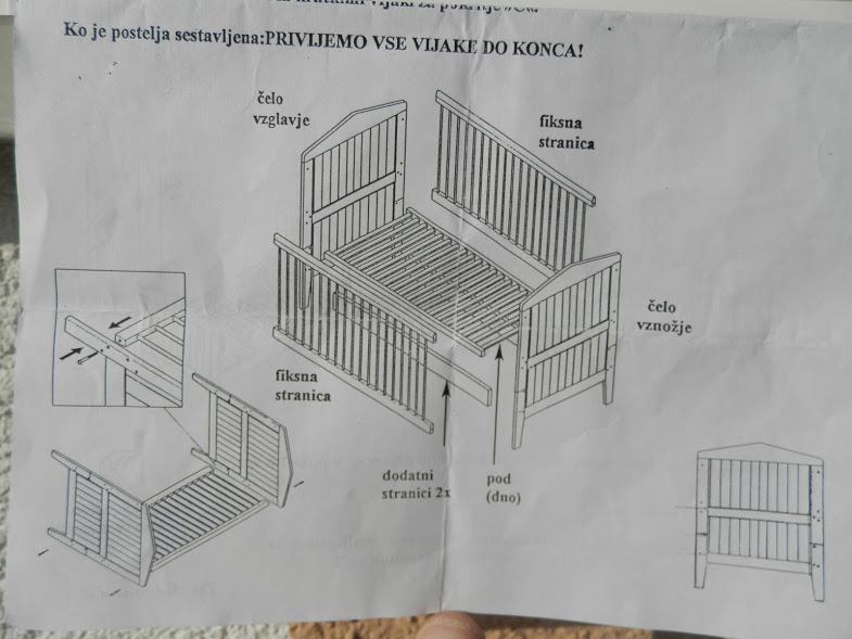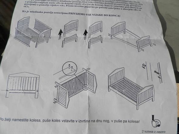 Moguće složiti na tri načina - upute priložene: Za malu bebu, za malo dijete s ogradom i pravi krevetić za predškolca.