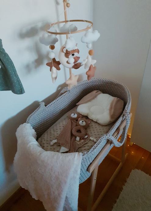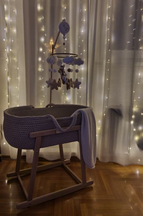 Uz koljevku poklanjam vrtuljak brenda Popi Petite. Savrseno pristaje uz koljevku, vrti se i svira nekoliko pjesama.