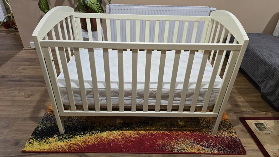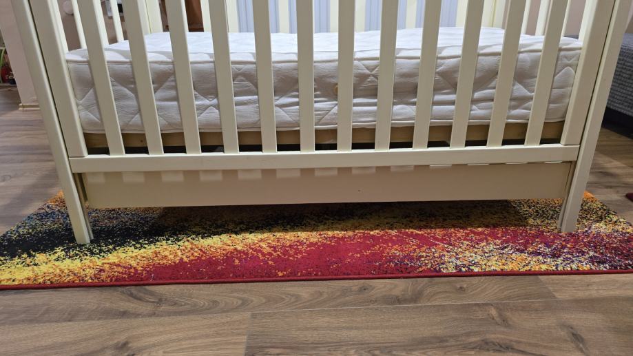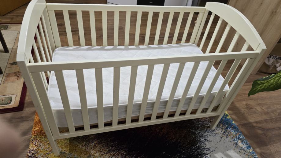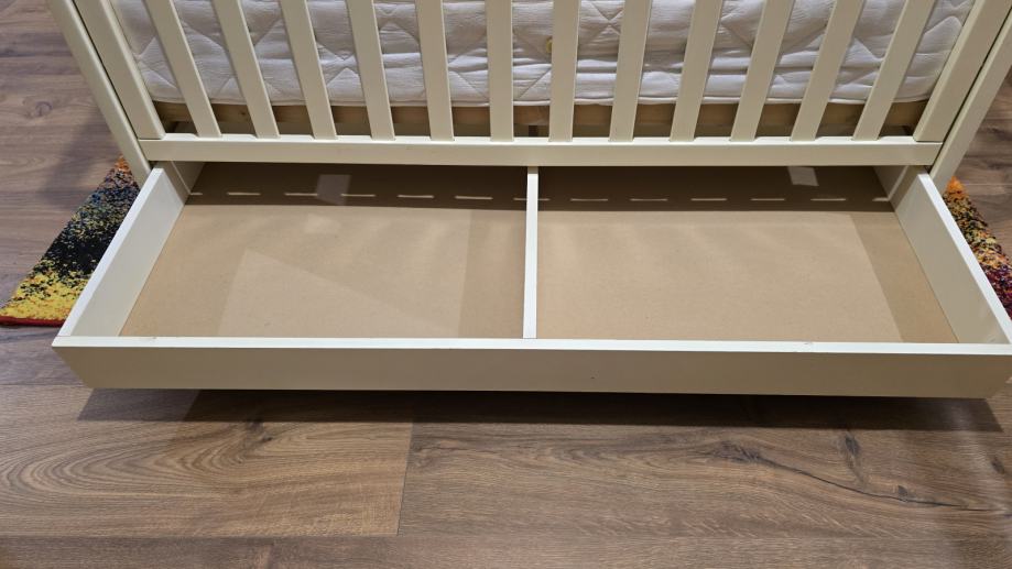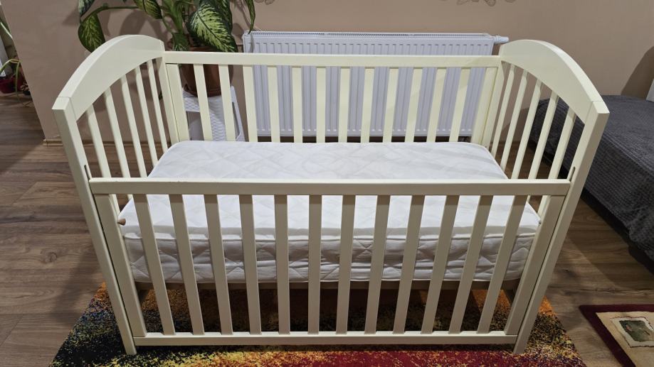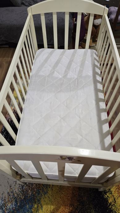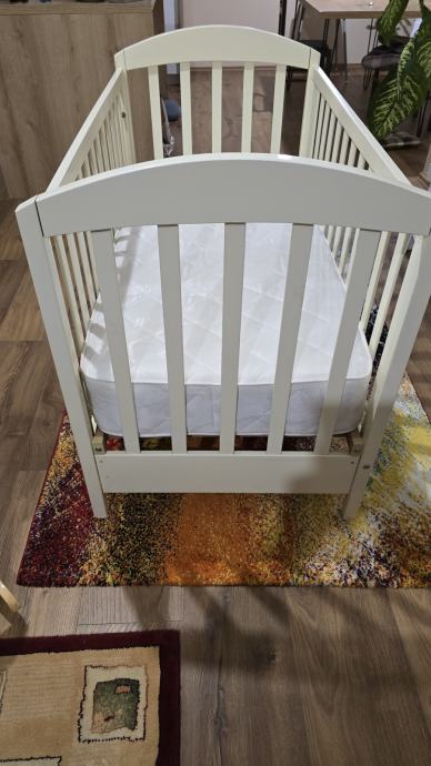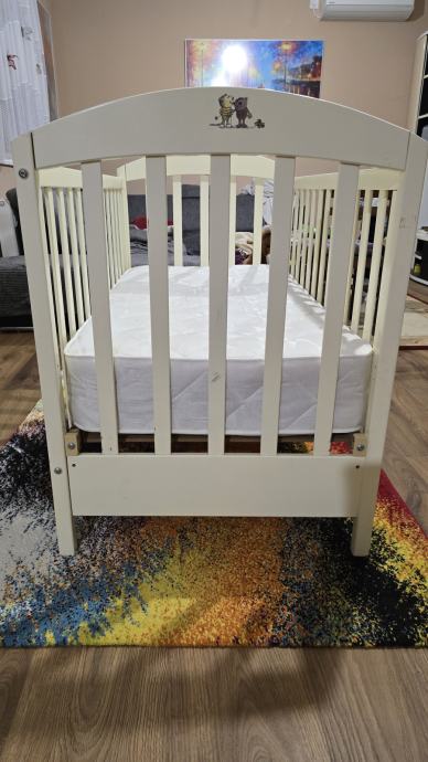 Prodaje se gore navedeni krevetić. Izrađen je od punog bukovog drveta. Ima podesivu prednju stranicu i mogućnost podešavanja podnice na tri različita nivoa. Ispod krevetića je dodatna ladica gdje možete odložiti dekice ili neke dječje potrepštine. Uz krevetić dolazi i madrac. Madrac je čist, očuvan i bez fleka.