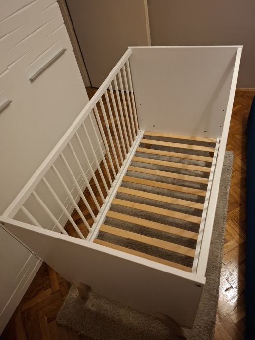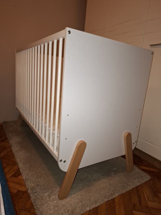Prodajem kinderbet s madracem 120×60 cm, kupljen u Lesnini. U odličnom je stanju, korišten za 1 dijete. Podnica je podesiva u 3 razine. Navlaka madraca se skida i periva je u mašini.