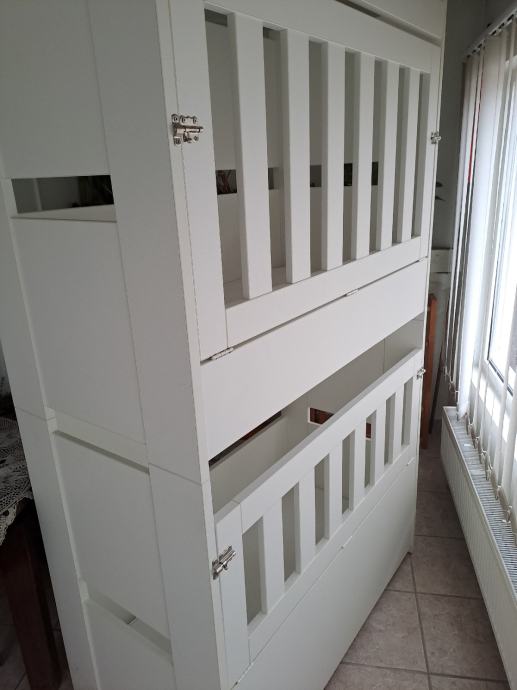 Prodajem dječje krevetiće na kat. Kvalitetni custom made krevetići za one sa manjkom prostora. Dimenzije: visina 210 cm, dužina 125 cm, dubina 66 cm. Unutra ide standardni madrac 120x60 cm. Stanje odlično. Za više informacija zovite ili može poruke na WAPP, Viber, SMS...