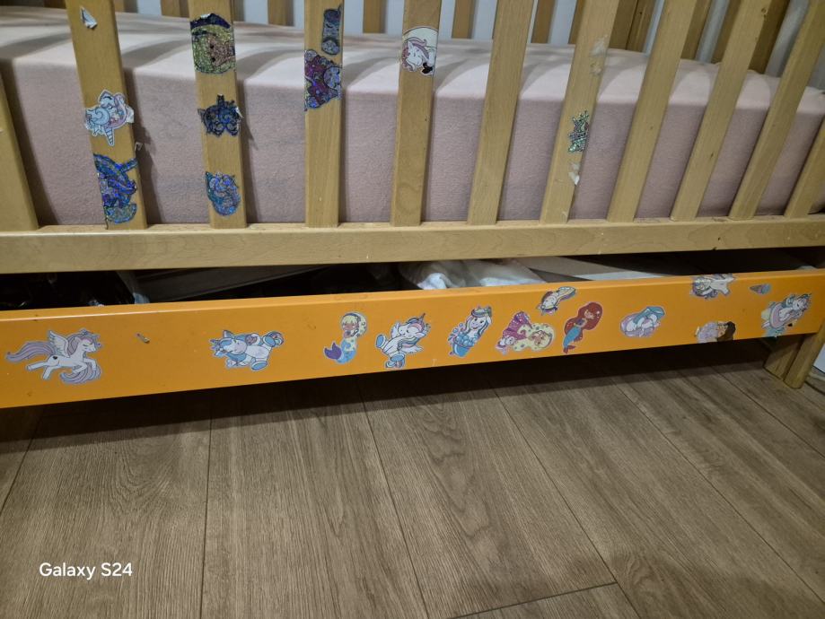 Ima kotačiće i ladicu ispod za spremanje stvari ili igracaka...