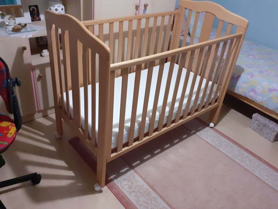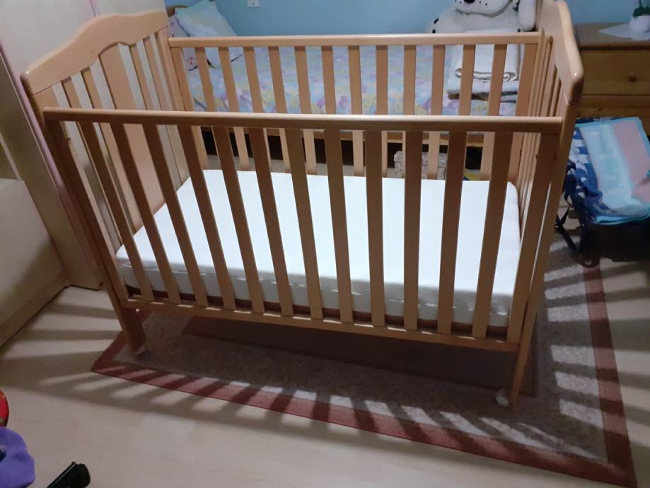 očuvan ,na točkićima, sa kvalitetnim madracem kojem je navlaka skidiva i periva