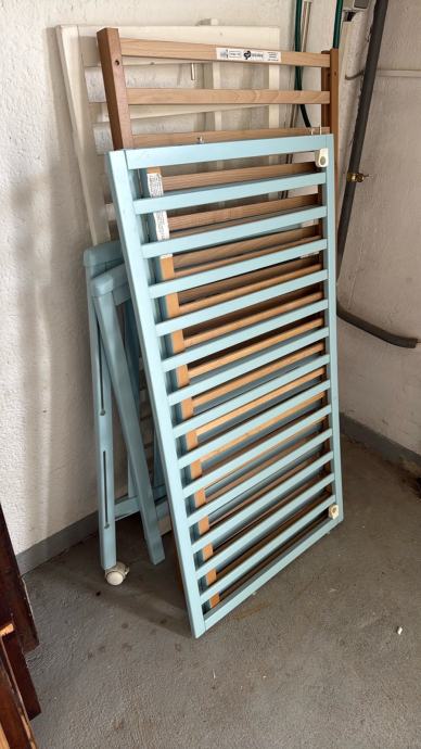 Kinderbet s ocuvanim madracom 60x120cm,na razlicite visine se moze podesiti madrac. Jako je ocuvan i lagan, te ima kotacice pa je jako spretno koristiti ga i kao dnevni krevetic.