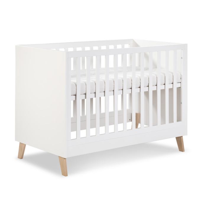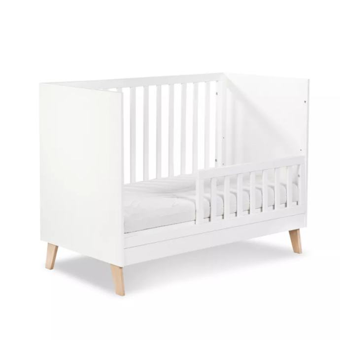 Krevetić je korišten 18 mjeseci, bez tragova oštećenja. Dimenzije 120x60 cm, ima tri nivoa te se dno krevetića po uzrastu bebe može štimati na odgovarajuću visinu. Također ima dvije srednje prečke. Bočna stranica krevetića se može skidati kako bih ste napravili sofu. Netoksične boje, materijal izrade je drvo bora.