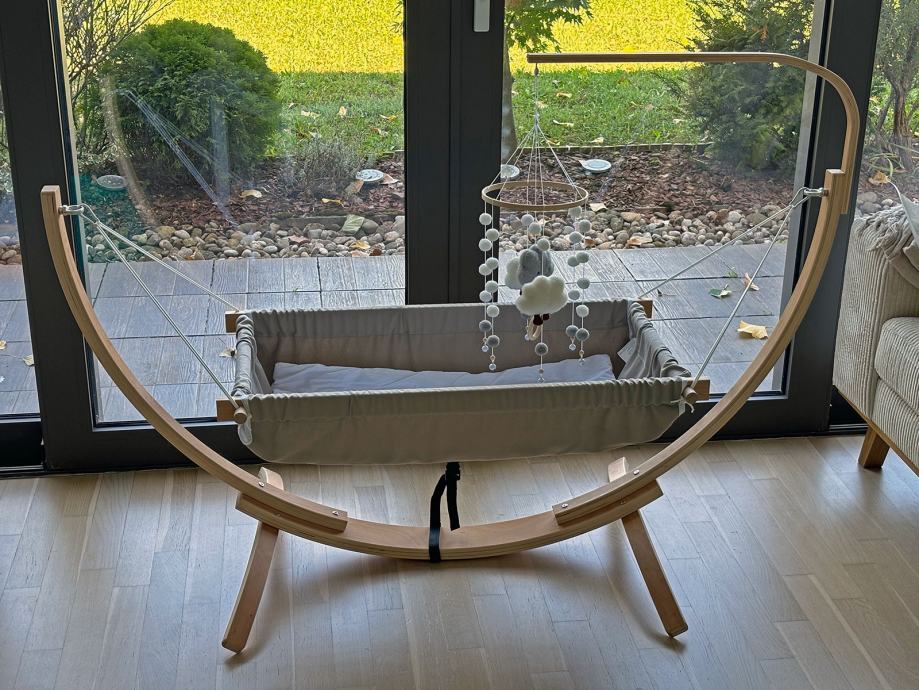 Kolijevka (hammock) za bebu do 15kg. Korišteno, ali kao novo, vidljivo na zadnjoj fotki.