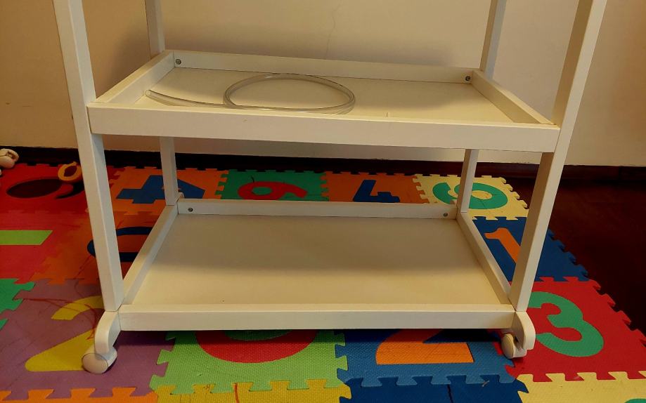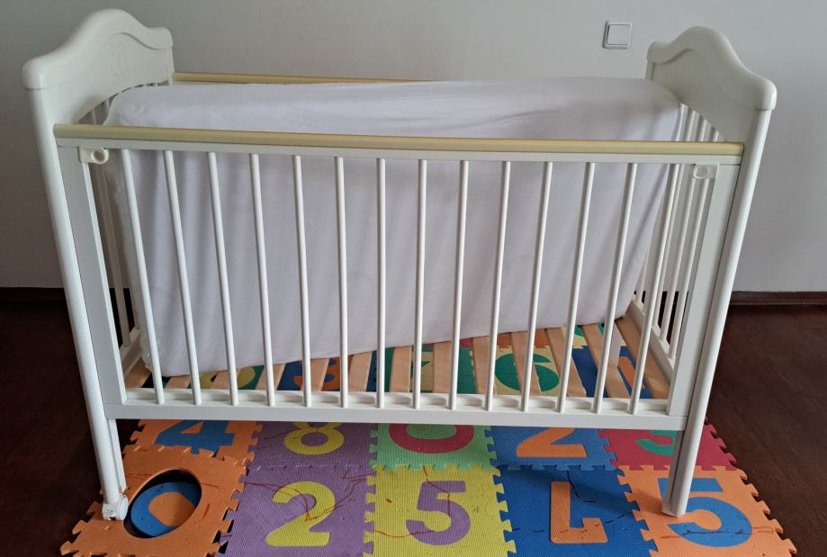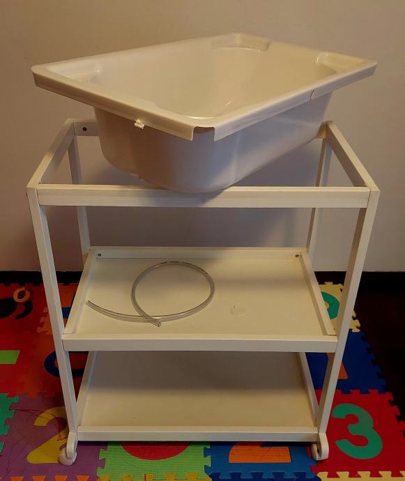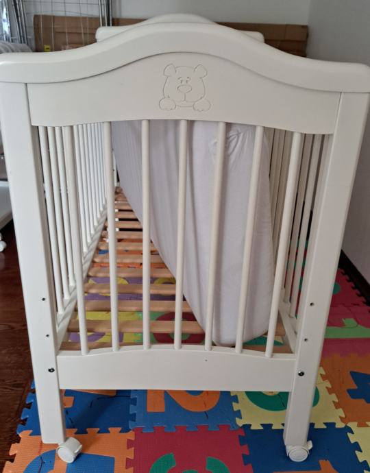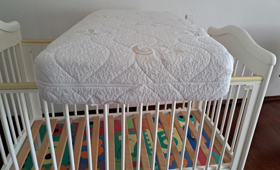 Krevetić 120x60 sa debelim madracem i ogradicom te kadica na stalku