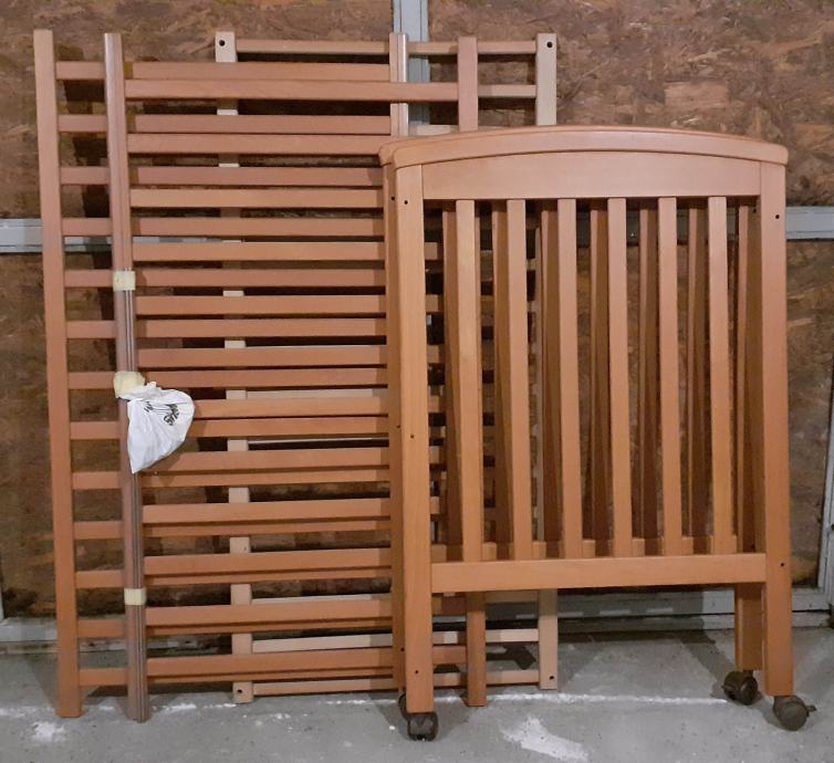 Jako očuvani vrlo jednostavan i praktičan kinderbet sa kotačićima i mogućnosti spuštanja stranice. Prodajem bez madraca. dimenzije za madrac 120 cm x 60 cm.